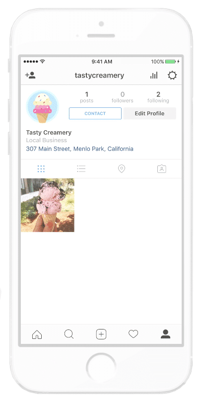 Bir işletme hesabıyla takipçileriniz profilinize eriştiklerinde bir "İletişim" düğmesi göreceklerdir. Tıklarlarsa, sizi aramak, size e-posta göndermek veya sizi haritada bulmak gibi belirli eylemleri gerçekleştirmeye davet edilirler.