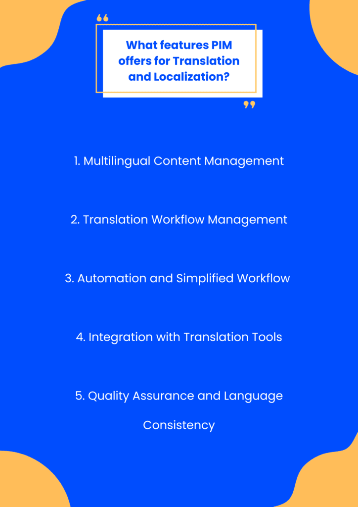 PIM sistemi, çeviri ve yerelleştirme için aşağıdaki listelenen özellikleri sunar;