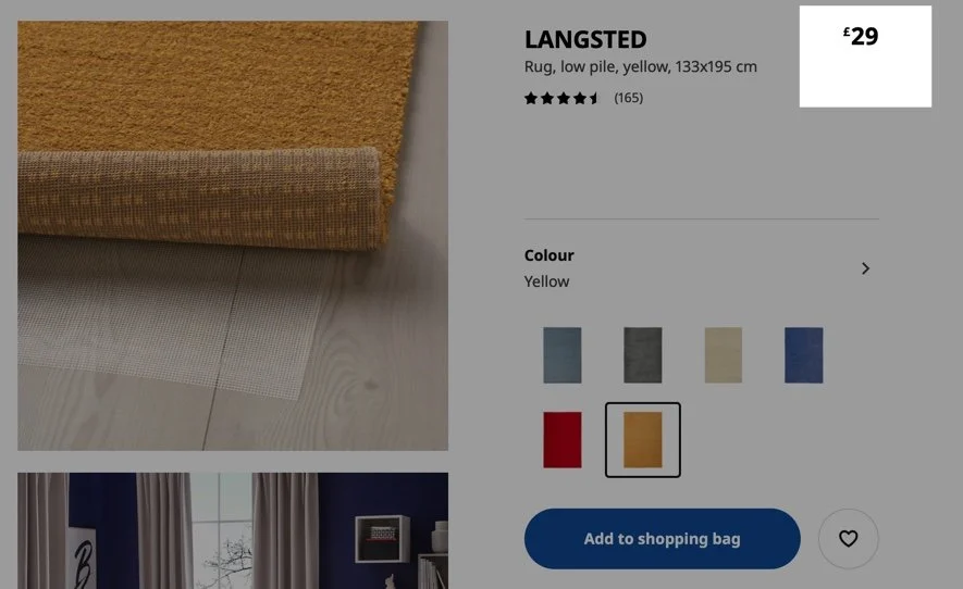 IKEA örneğimizde, "Sepete Ekle" düğmesi, diğer düğmelerle azaltılmayan benzersiz bir stile sahiptir ve Baymard'ın önerdiği gibi, onu sayfanın birincil düğmesi olarak açıkça ayırt eder.