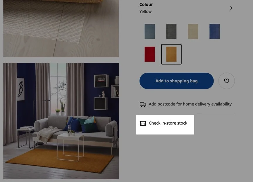 IKEA'nın bu düğmeye sahip olduğunu ve müşterilerin istedikleri takdirde mağaza stoklarını kontrol edebileceğini görebiliyoruz.