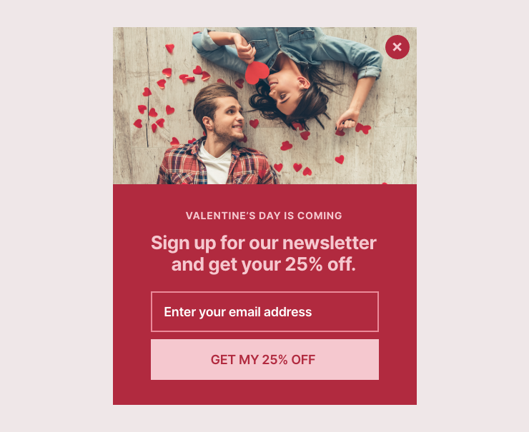 Bu açılır pencere, kullanıcıların aşk dolu pazarlama kampanyalarınızdayken e-posta adreslerini hızla toplamasını sağlar.