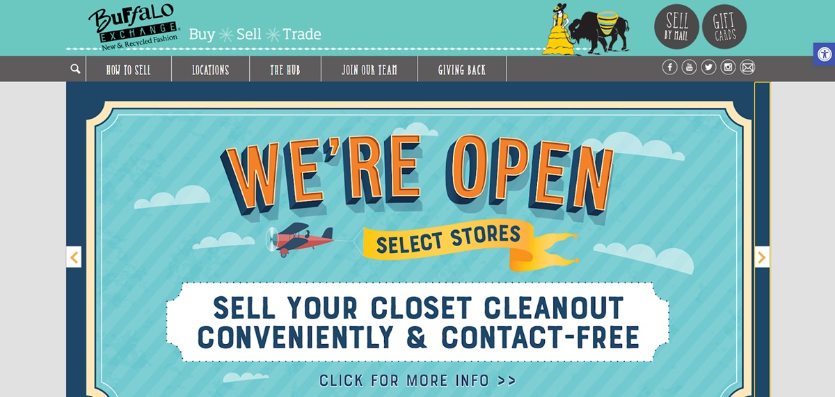 1974 yılında kurulan Buffalo Exchange, kullanılmış giysi alıp satmak için özel sektöre ait bir moda satış yeridir. Şirket şimdi ABD'de 19 eyalette 50 mağazaya yayıldı. Geri dönüştürülmüş giysilerin kirliliği ve israfı azaltabileceği inancıyla Buffalo Exchange, büyük bedenler, erkek giyim, kot pantolonlar, tişörtler, elbiseler, ayakkabılar, mücevherler, eski giysiler ve daha pek çok giysi ve aksesuarı en iyi koşullarda kabul eder. daha fazla.
