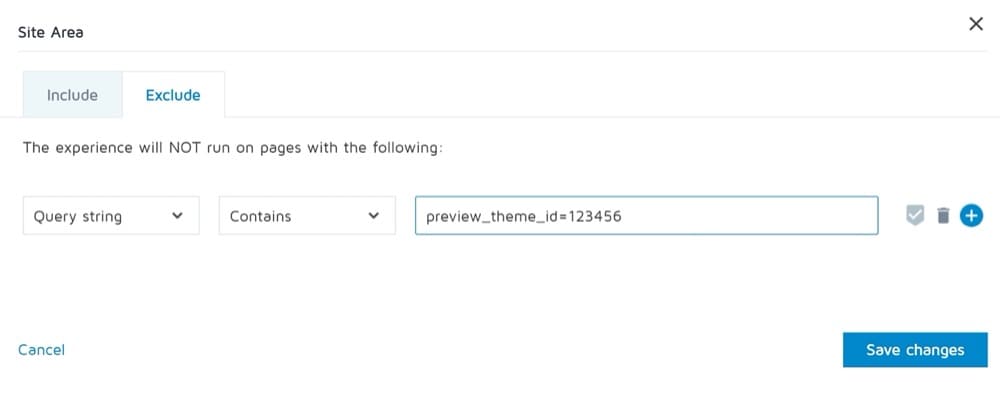 当查询字符串包含:preview_theme_id=123456 时,请确保排除页面。