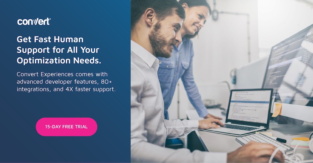 我们已经概述了上述所有步骤,因此如果您对测试过程不熟悉,请不要担心! 如果您喜欢 Convert Experiences 的易用性,请单击下面的横幅进行免费试用,以便立即开始寻找合适的 Shopify 主题。