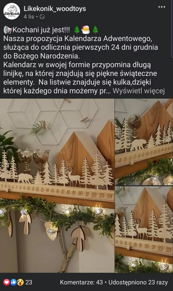 您还可以坚持使用更简单的出现产品,用于营销活动。 让我们来看看木制玩具制造商Likekonik的产品。 这样的日历制作得越多,价格越实惠,广告活动成功的机会就越大。
