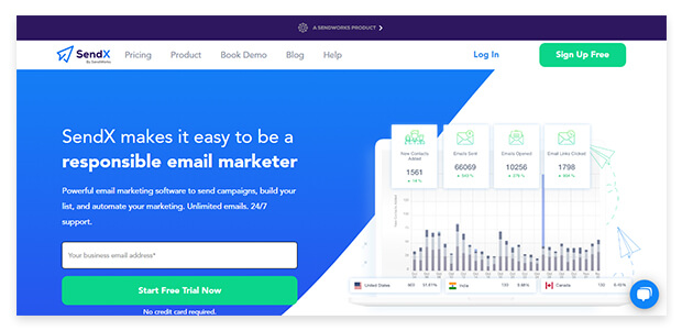 SendX 是一个电子邮件营销应用程序,其中包含用于管理您的列表的多种工具。 SendX 允许您根据客户的兴趣对他们进行细分。 除此之外,您还可以利用弹出表单、拖放编辑器和 A/B 测试来使您的电子邮件活动更具吸引力。