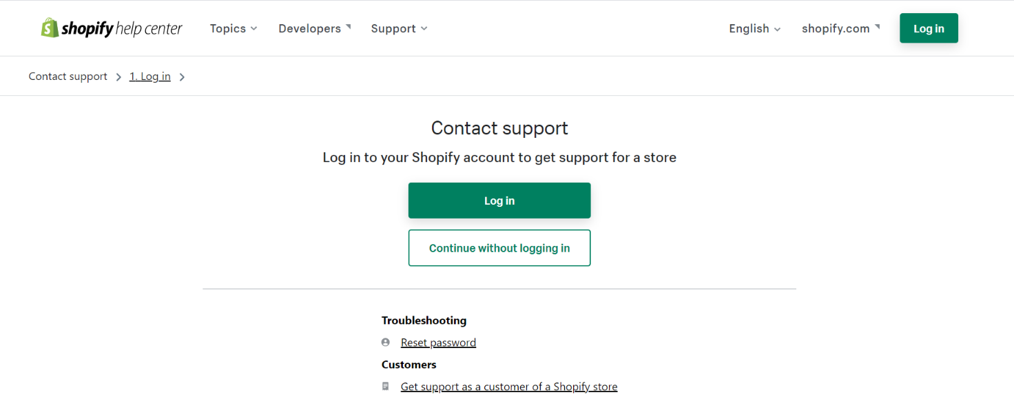 Shopify 的客户支持得分高于 Big Cartel。 它有多种帮助选项可供选择,包括: