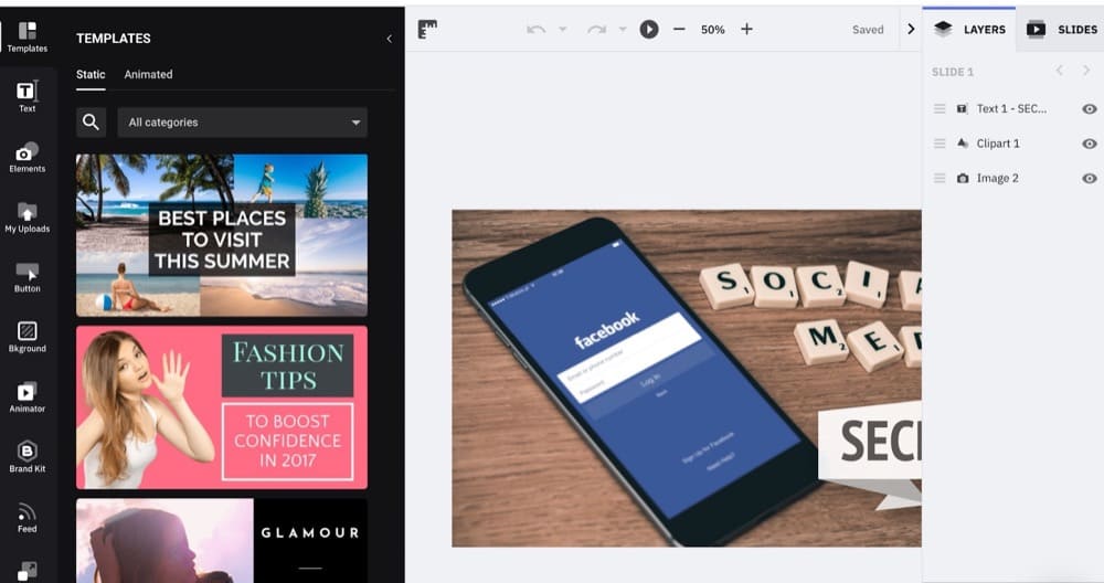 该工具允许您大规模创建原始图像并在所有可用的营销渠道中重复使用它们: