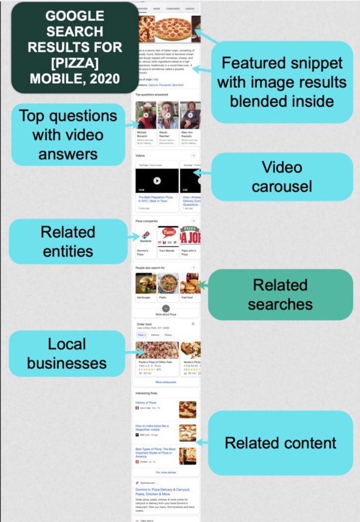 谷歌提供十个简单的点击链接的日子已经一去不复返了。 今天的 SERP 包括地图、图像、视频等: