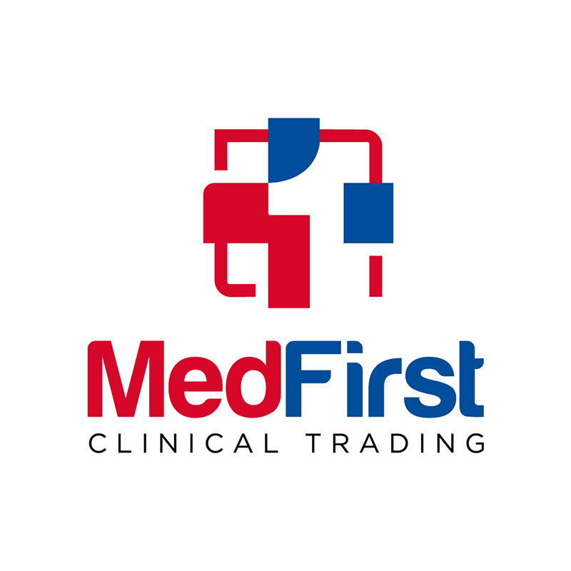 使用明亮和充满活力的颜色总是引起注意。 这正是设计师希望 MedFirst Clinical Trading 在其标志设计中所具备的。 该图像是十字架和数字 1 的完美融合。