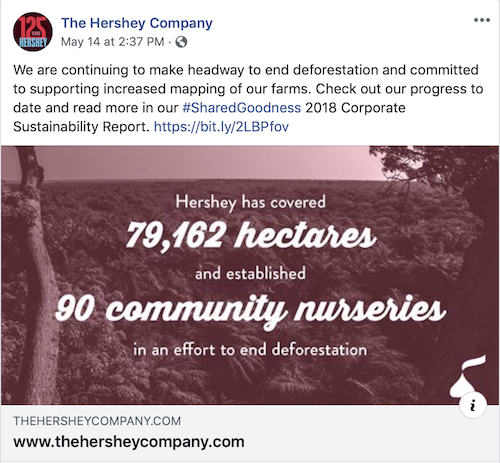 Hershey 是 2018 年千禧一代品牌 100 强之一,而且(除了它是巧克力这一事实之外)它们对千禧一代的吸引力的两个重要原因是它们不使用人工成分并且回馈社会。