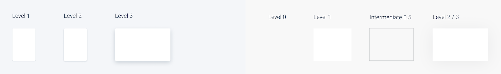 (注意:Intermediate 1.5 级别是包含显示在级别 1、2 或 3 的一部分上但仍将隐藏在更高级别下的所有组件的级别。此类组件包括工具提示、弹出窗口、下拉列表。新更新从中间状态移除阴影。无论放置在哪个级别,它都更亮且视觉上一致。)