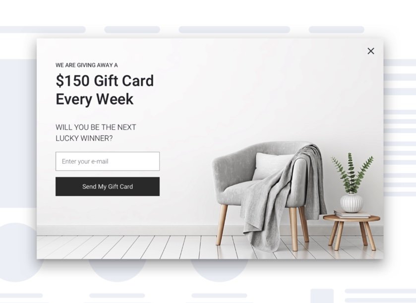 您可以提供带有弹出窗口的礼品卡,以防止潜在买家在没有转换的情况下离开,并鼓励他们通过输入电子邮件地址与您的品牌保持联系。