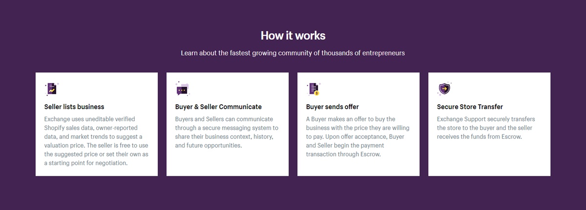 Shopify Exchange 与 Escrow 建立了合作关系,Escrow 是一个安全的支付平台,已经处理了超过 35 亿美元的支付。 每当您购买 Shopify 商店时,您都会使用此平台。