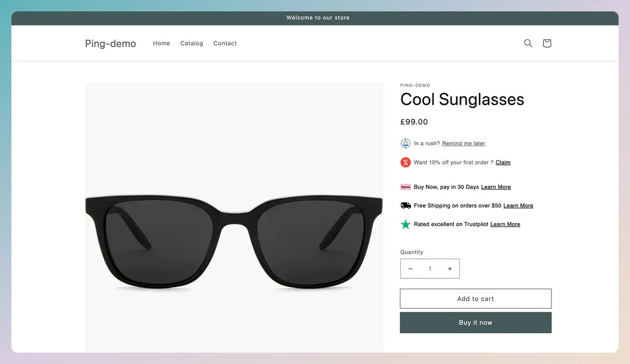 Ping 使您能够为首次购买者从您的商店购买商品提供足够的信任,同时收集他们的电子邮件地址以用于未来的营销。