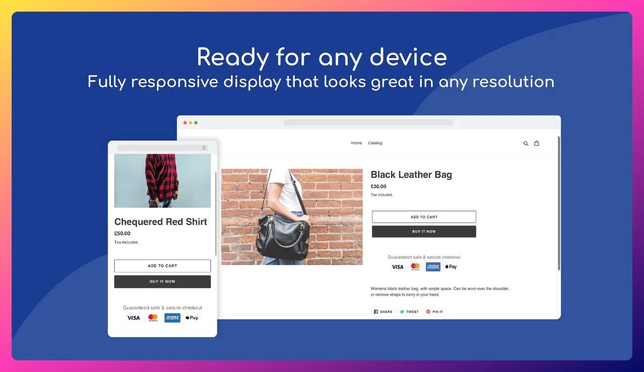此应用程序提供支付徽章、信任图标和完全响应移动设备或平板电脑的简单设置。