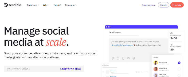 Sendible 以其用户友好的界面而闻名,具有先进的调度和自动化功能。 它还具有可靠的客户管理功能,可让您管理多个工作流程和帐户。 它有一个分析仪表板,您可以完全自定义以显示对您最重要的指标。