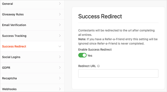 此外,您可以为赠品设置重定向。 这意味着您可以将输入您的赠品的人发送到您网站上的不同页面,例如感谢页面或热门博客文章。