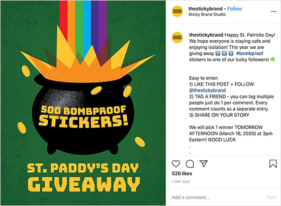 发布圣帕特里克节赠品后,您需要让人们知道,以便他们可以参加。 一个好主意是在赠品上线前开始宣传,这样人们就会提前知道并兴奋地进入。