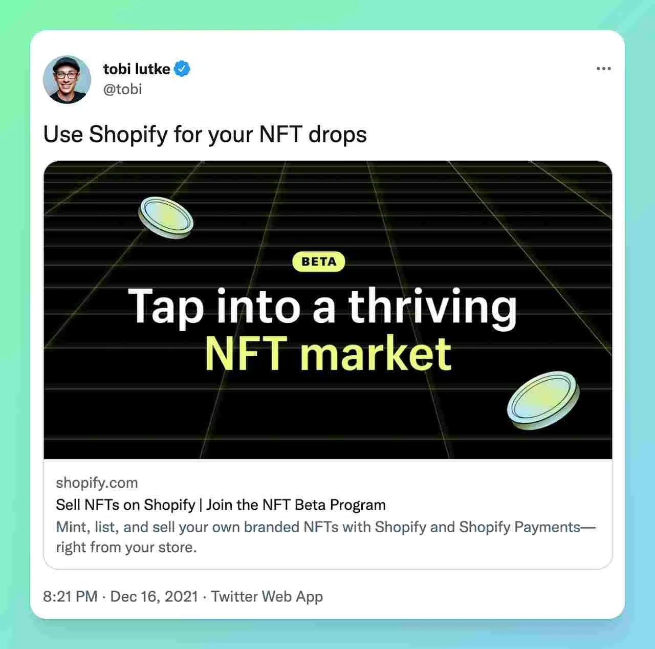 Shopify 通过启动 NFT 平台允许用户铸造和交易不可替代的代币,将其对 NFT 的支持翻了一番。