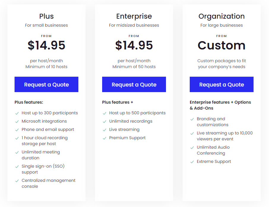 有一个自定义企业选项,包括批量购买网络研讨会、电话和会议解决方案。