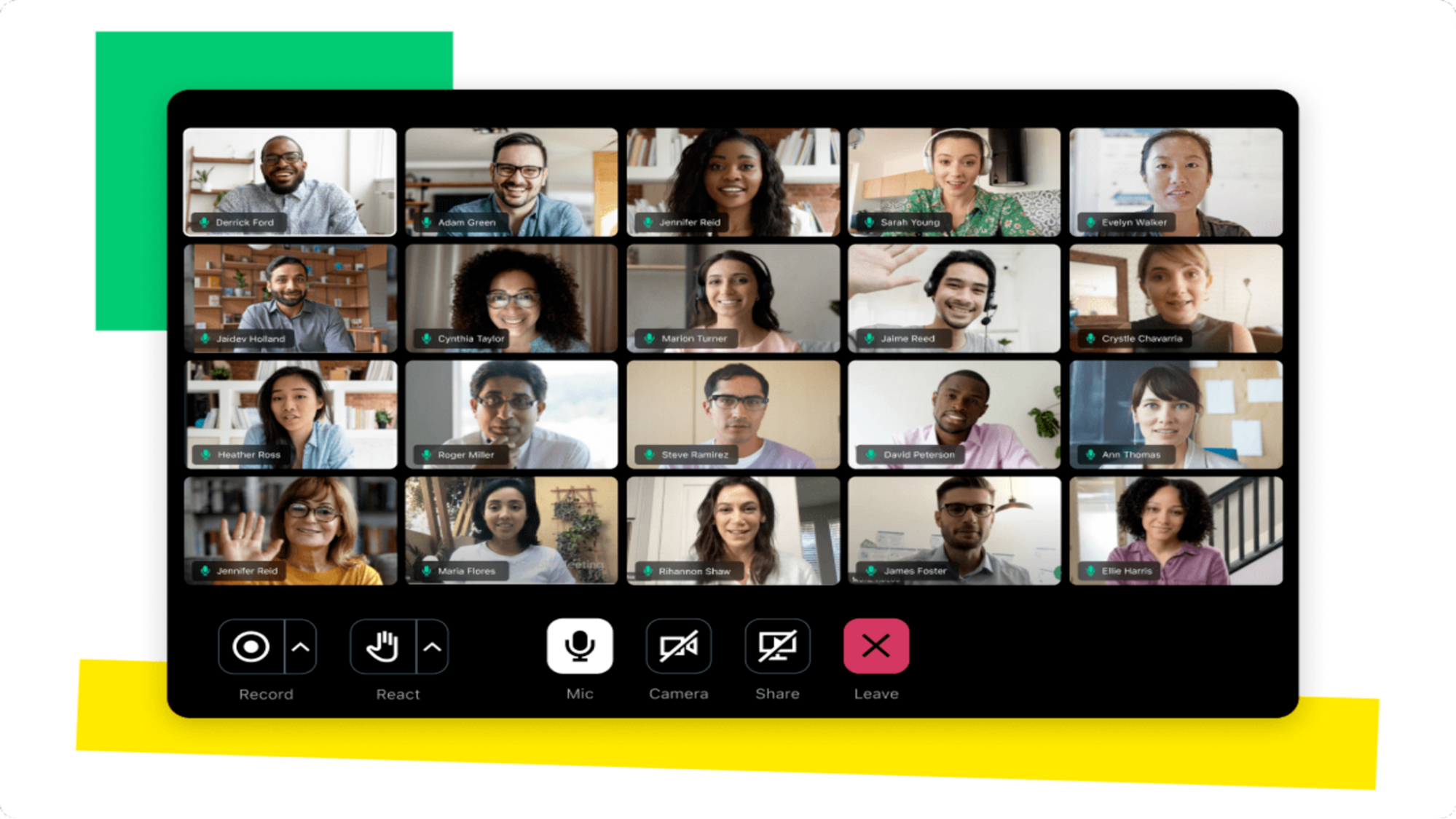 - 视频会议:任何虚拟会议平台的核心都是视频会议,即通过一次视频通话将多人聚集在一起的能力。