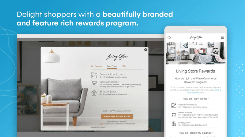 S Loyalty 允許您向您的在線商店添加有吸引力的獎勵計劃,讓您的常客感到受到讚賞。 您可以為桌面和移動設備定制您的設計——考慮到現在在手機上瀏覽電子商務網站的購物者數量龐大,這一點尤為重要。