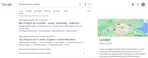 例如,Tripadvisor 為幾乎所有與旅行相關的查詢提供了一個網頁。 如果有人搜索“(城市)最佳活動”,您可以確定 Tripadvisor 會出現在熱門搜索結果之一中。 這是由於程序化搜索引擎優化。 Tripadvisor 使用程序化 SEO 來定位關鍵字並優化其登錄頁面以覆蓋盡可能多的人。 他們為數千個與旅遊行業相關的交易登錄頁面執行此操作,這使得 Tripadvisor 成為所有旅遊活動中最值得信賴的網站之一。