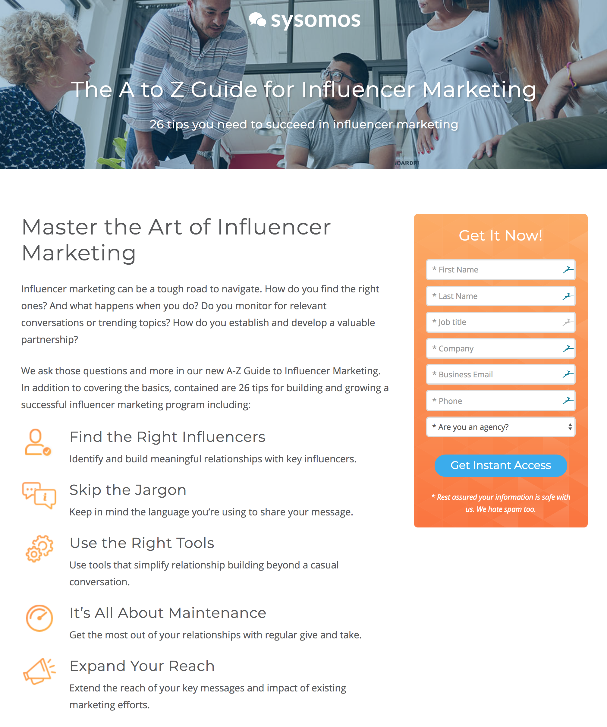 這是 Sysomos 的一個很好的例子,首先是電子郵件,然後是點擊後登錄頁面: