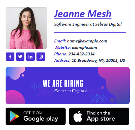 相反,使用專業設計要容易得多,這將確保您的簽名在不同裝置和電子郵件用戶端上保持一致。 您可以聘請專業人員為您建立簽名,也可以使用 Newoldstamp 電子郵件簽名產生器,該產生器附帶一系列範本可供選擇。