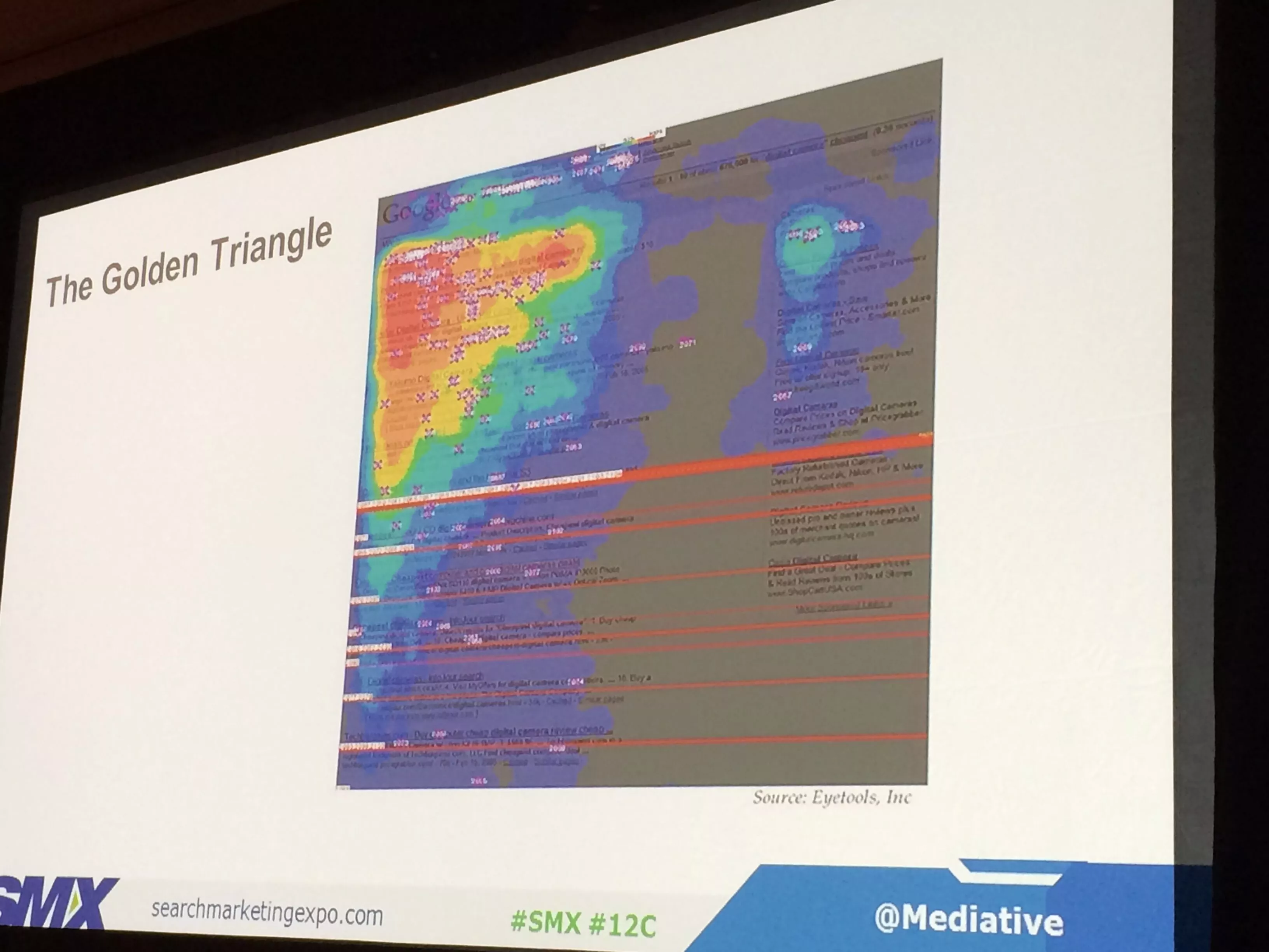 調解首席戰略官 Gord Hotchkiss 和業務發展經理 Matt Agtarap 在 2015 年西部搜索營銷博覽會 (SMX) 上的題為“用戶如何查看和與當代 Google 搜索結果交互”的恰當標題中分享了他們公司 2014 年 Google SERP 眼動追踪研究的結果。