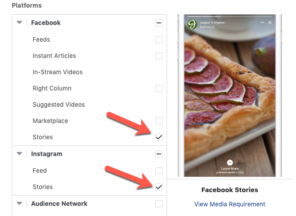 選擇 Facebook(和 Instagram)故事位置。