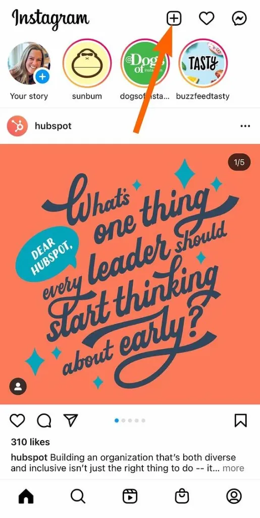 獲得圖像後,重新登錄 Instagram 帳戶。 然後,點擊Instagram頁面右上角的“新帖子”或“新帖子按鈕”(正方形內的加號)。
