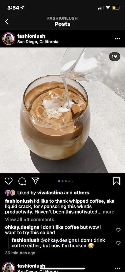 將您的內容重新發佈到 Instagram 可以讓您展示客戶、品牌忠誠者甚至員工對您品牌的認可。 UGC 通常被認為更可靠,因為消費者不會通過推廣您的產品或產品(除非您在做廣告)獲得任何好處; 它只是發布通知他們的追隨者他們喜歡你的產品。
