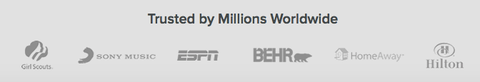 出於與名人代言相同的原因,客戶徽標也很有用。 當人們對知名品牌產生積極印象時(這些品牌正在使用您的服務),他們可能會對您的公司產生更積極的看法。 這裡有幾個例子來證明: