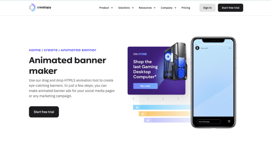 憑藉其用戶友好的拖放 UI,這個動畫工具勢不可擋。 Creatopy 可幫助您構建一個有效的 HTML5 動畫橫幅。 使用此工具,您可以在幾分鐘內創建一個誘人的橫幅。 Creatopy 提供了一個模板庫,所有這些模板都專業且易於使用。 從那裡,您可以根據自己的喜好對其進行自定義。