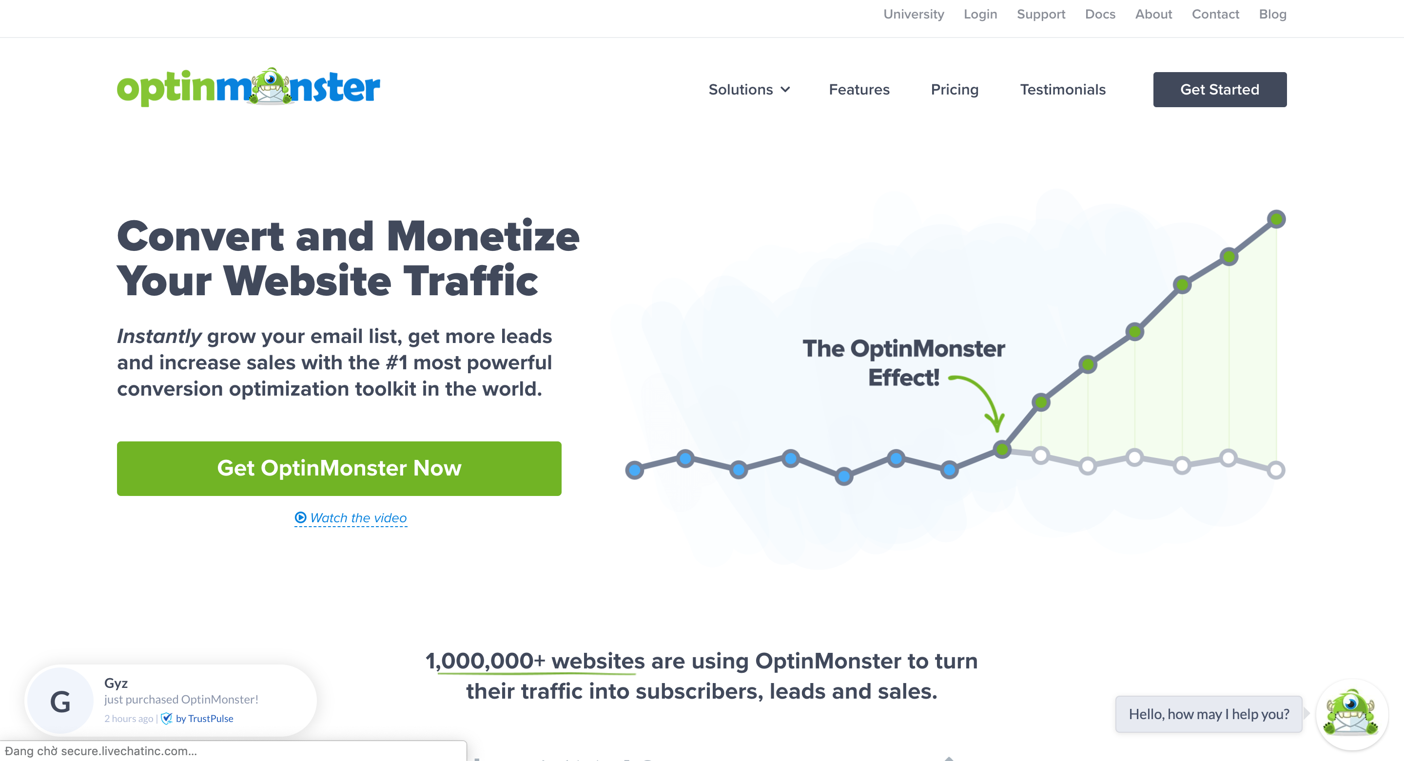 OptinMonster 專注於轉換和貨幣化您的網站流量。 它有助於擴大您的電子郵件列表,並為您提供獲得更多潛在客戶和促進銷售的機會。 您可以輕鬆地按照步驟幫助優化 OptinMonster 提供的 SEO 服務。 它不僅包含各種被證明可以轉換的模板,而且還為您減少了猜測。 此外,OptinMonster 有助於個性化基於客戶態度的活動,以實現轉化和銷售最大化。 OptinMonster 允許您將流量發送到您網站上的一些關鍵頁面。 您需要做的就是插入一個按鈕、自定義操作並跟踪參與度。 如果您想獲得統計數據,OptinMonster 可以幫助您比較拆分測試並研究哪些類型的頁面將轉換為最佳。