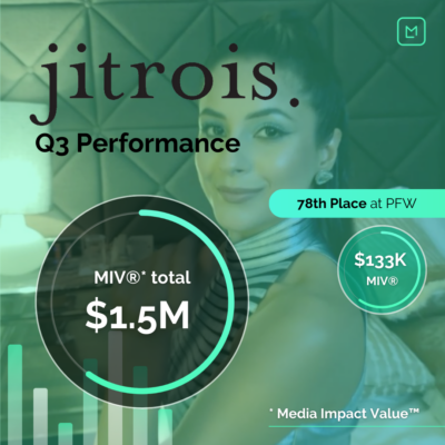 Jitrois 受益於 Influencer Voice Carolina (carolynmoura) 的展示位置,其中包括巴黎時裝週,該活動在 MIV 中產生了 2.9 萬美元的收入。 Jitrois 進一步獲得了美國 InStyle、法國 Gala 和 Madame Figaro 等知名媒體的展示機會。