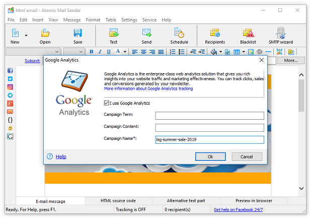 此外,強烈建議在您的電子郵件鏈接中包含 UTM 標記,這將進一步幫助您分析活動的進度並在所選系統(Google Analytics 或類似系統)上跟踪它。 該系統也提供 GA 集成: